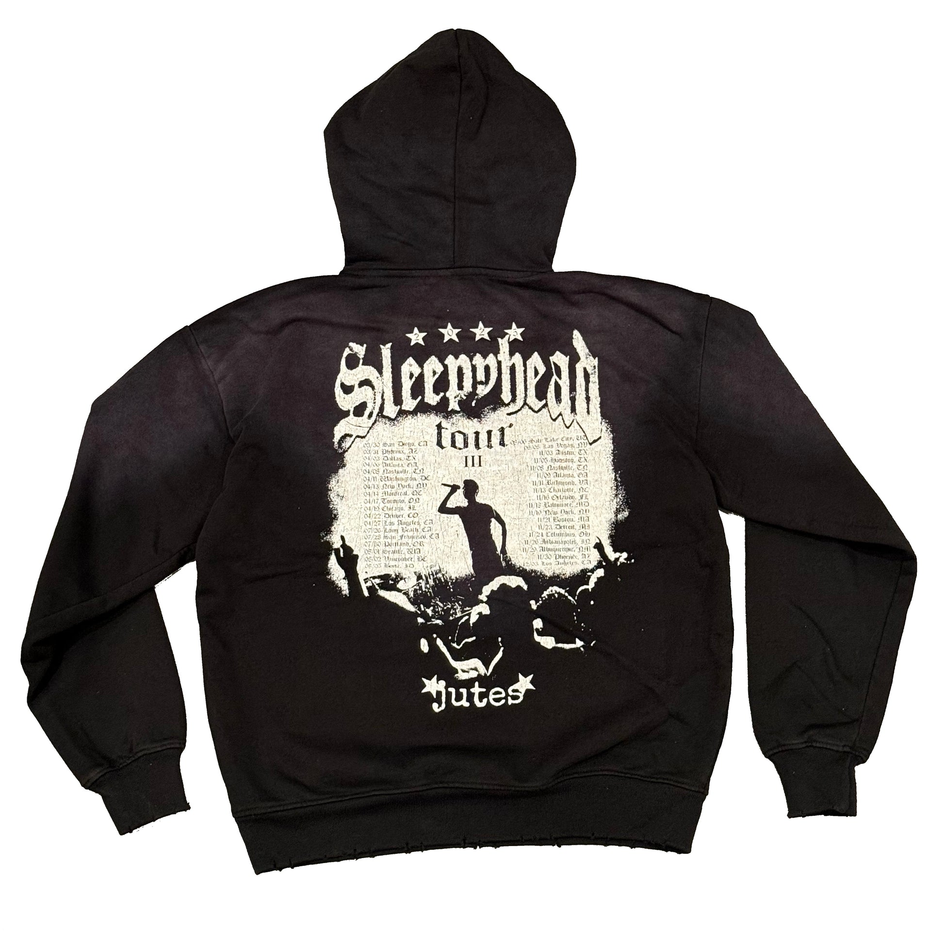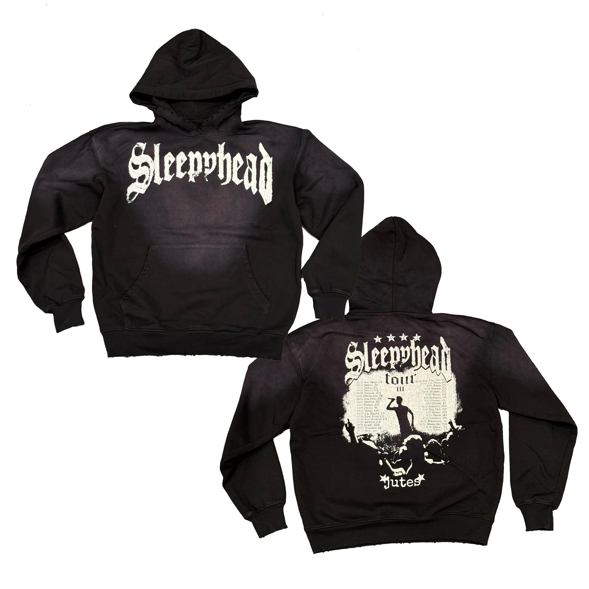 Sleepyhead Tour pullover hoodie with tour dates on the back (all 3 legs). This hoodie has a faded vintage wash with light distressing.